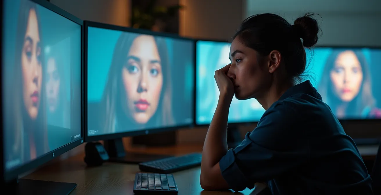Video conferencing shatters this delicate process. The slight delays, pixelation, and flattened perspective strip away the crucial micro-expressions our brains depend on. In fact, research from Scientific Reports reveals that facial micromovements synchronization is 4 times less effective through screens. Your brain receives incomplete data, forcing it to work overtime to fill in the gaps. This creates a significant cognitive load, leading to the exhaustion we now call “Zoom fatigue.” You’re not just listening and watching; you’re consciously trying to decode what your brain would normally process unconsciously and instantly.